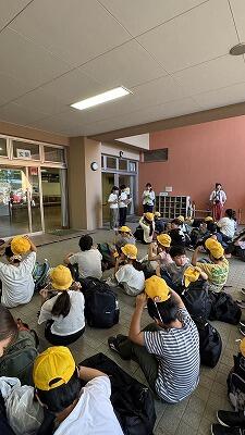 開始前に体育館エアコンを稼働し暑さ対策を行い、全員参集型で行いました。