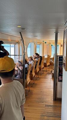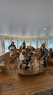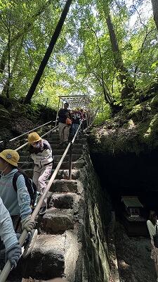 ・朝の集い・退館式・山中湖遊覧船乗船・青木ヶ原樹海ハイキング、富岳風穴見学