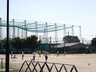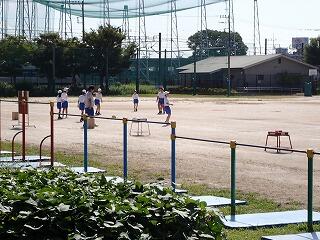 校庭では4の2が体育、今日はベースボール型のゲームを行います。