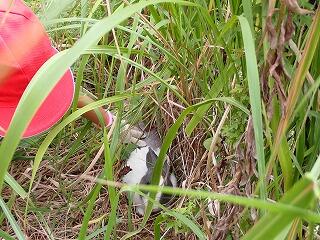 とんぼに見守られ