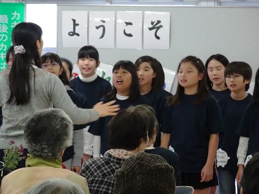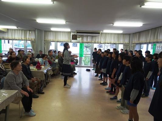 今日の昼休みに大枝公民館前の中央集会場で毎週水曜日に行われている「ふれあい喫茶」で、南小の合唱部が歌を披露しました。約100名近くの方が聴いてくださいました。披露した曲は「もみじ」「里の秋」「ビリーブ」の三曲を歌いました。アンコールもいただき、南小校歌も歌いました。特に「里の秋」では、会場の皆さんも一緒に歌っていただき、こちらも感動してしまいました。また、伺えたらいいなあと思っています。こういう機会をつくっていただき、ありがとうございました。