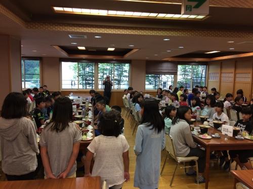 今日は、5年2組担任の先生の誕生日です。夕食の前に子どもたち全員から、ハッピーバースデーの歌を大合唱してお祝いしました。