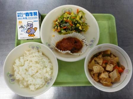 今日の献立は「ごはん・牛乳・鶏肉の金山寺みそ