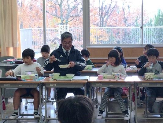 今日から、「校長先生との会食」が3年生より始まりました。これから、来年に向けて各教室で校長先生が一緒に食べます。校長先生からもたくさん子どもたちに質問がありました。笑顔の給食になりました。