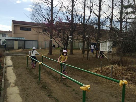 こちらでは、一輪車の練習です