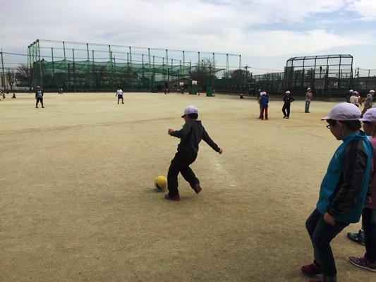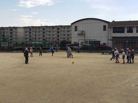 キックベースボールをして遊ぶ子どもたち