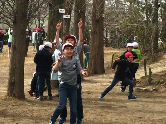 どんぐり山では、1年生が鬼ごっこをしていました