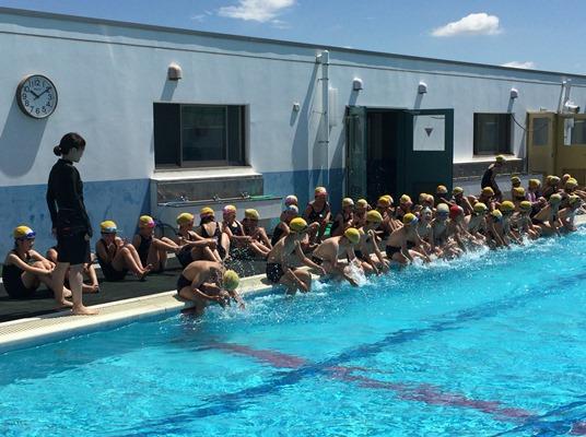 4年生の今年初めての水泳学習がありました。今日はよく晴れて、プール日和でした。水に慣れながら、だんだん泳ぐ技能を身につけられるように学んでいきます。安全に気をつけて、イルカのようになってください。