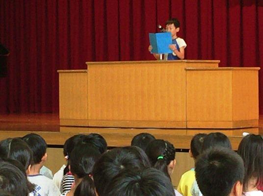 今日は、武里小学校・第1学期・終業式が行われました。校長先生からは、「4月に立てた目標が達成できましたか?」と“きらり賞”のお話がありました。一人一人の児童が、自分の立てた目標に向かって頑張れた1学期でした。児童代表の児童は、1学期を振り返って、目標に向かって頑張ってきたこと、2学期も努力していきたいとの前向きな話を聞くことができました。生徒指導からは、携帯スマホのトラブルやマナーのお話、お金の扱いについて、公園や道路での遊び方についてのお話でした。最後に、南小・合唱部のさわやかな歌声を聴くことができました。