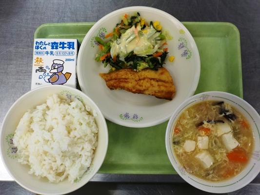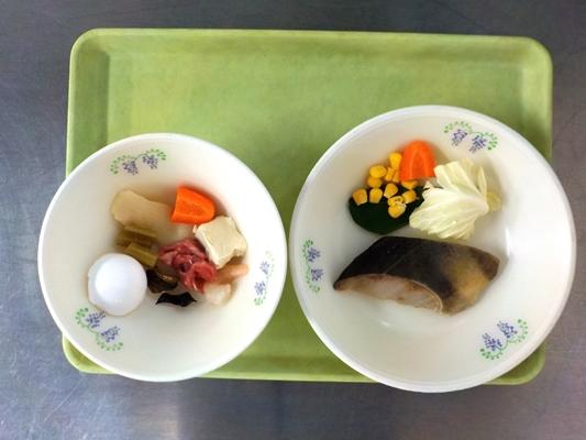 焼き・青菜とかんぴょうの和え物・みそ汁」です。