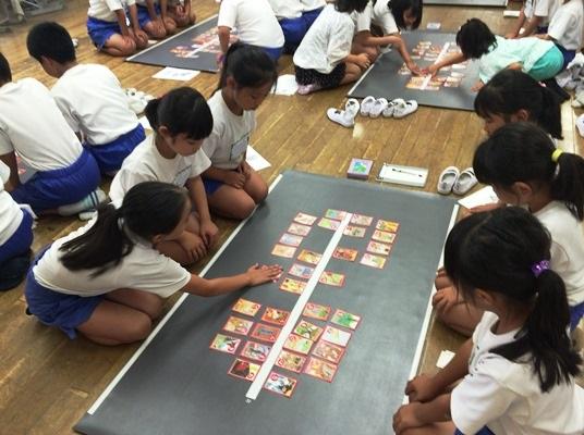 今日は、2、3時間目に「かすかべ郷土かるた学習」が3年生のオープンスクールで行われました。3人がチームを組み、2回戦を行いました。正式な、かるた大会のルールも教えていただいたり、知らなかった春日部市のことについても、楽しく学ぶことができました。指導していただいた教育委員会の先生、ありがとうございました。