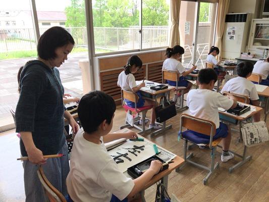 4年生の書写の時間に行ってみました。書順と字形の関係に気をつけて書いています。書いていると心も落ち着きますね。