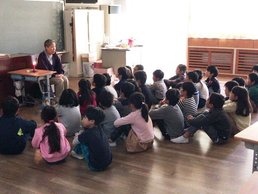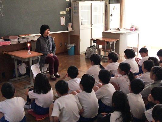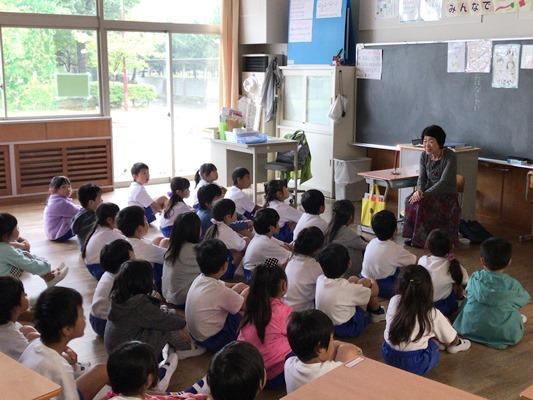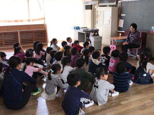 今朝は、「春日部おはなしの会」の皆様による「お話会」がありました。雨の中をありがとうございました。いつもこの「お話会」を楽しみにしています。お話を聞いている子どもたちの目が輝いていました。