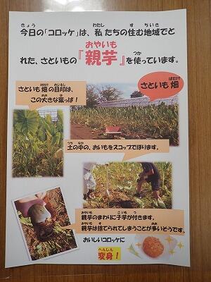 また、今日の給食の途中にこども達は、親芋コロッケの紹介動画も見ながら食べてきます。