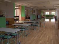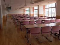 3階には、ランチールームが設けられ、明るく、そして、遠くの景色をみわたせるところで、140名が一緒に給食を食べられるようになっています。