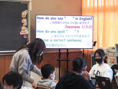 6年生の外国語学習の様子です。「オリジナルサンドを紹介しよう」と