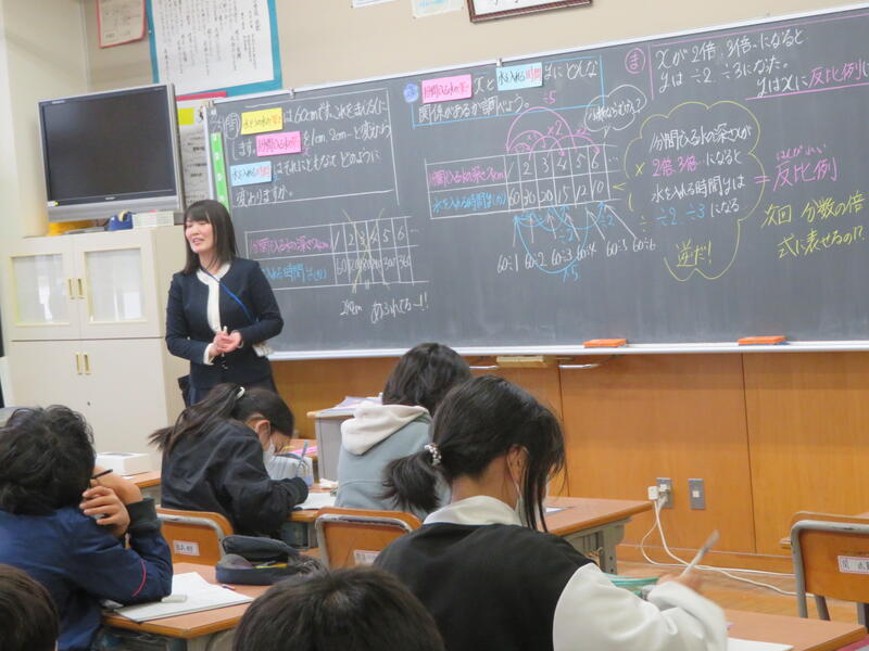 授業者は算数専科教員の福澄教諭、6年1組の教室で行いました。既習事項を元に、新たな課題について考え、解決していきました。子供たちは意欲的に、じっくり考えていました。新たな気づきや発見のある授業になりました。