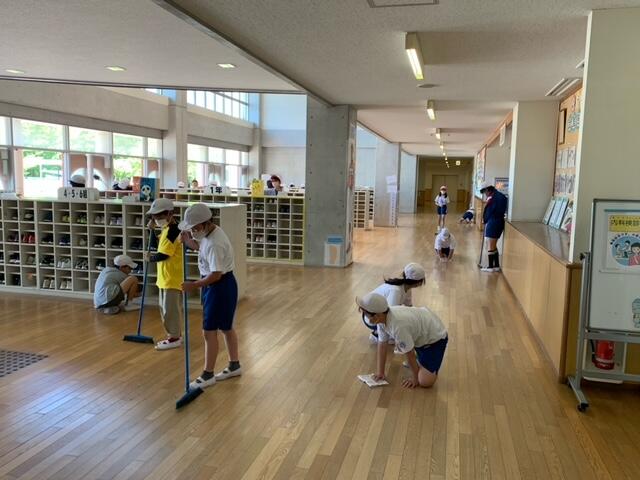 本年度から、掃除の時間を朝の時間帯にしています。今朝は、昨日の雨の影響でグランドの状況が