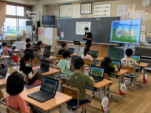やや緊張しながらも一生懸命進める実習生に応えるように、子供たちも授業に集中し、頑張って発表して