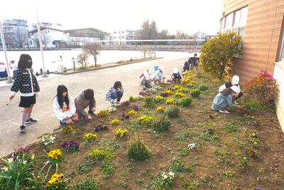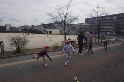 「いよいよ、芽吹く季節」である3月は、暖かい始まりとなりました。外では、1年生が生活科で作った作品を元気よく飛ばしていました。