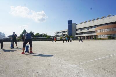 放課後、新体力テストの50m走とボール投げの準備が行われました。