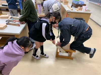 2月16日、3年生を対象に木工教室を実施しました。一人一人、木材を使ってプランターを作成しました。建設埼玉の皆さんが各グループに一人ずつ入ってくださり、手取り足取り丁寧に教えてくださいました。お陰で参加者全員が無事完成!出来上がった作品を見て大喜びの3年生!
