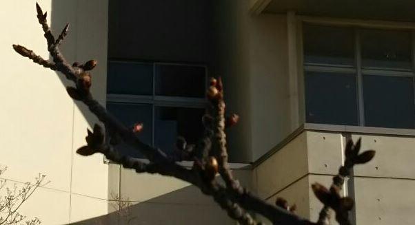 校舎の南側のカワヅザクラのつぼみが少しずつ膨らみ始めてきました。