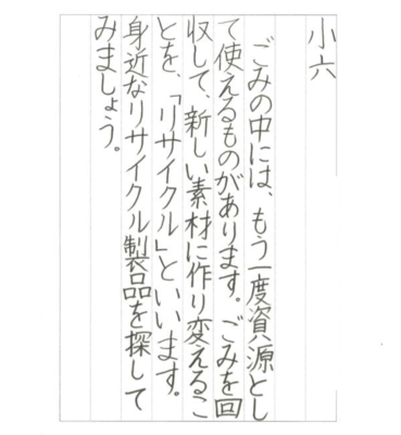 武里西小からも校内硬筆展にて特選に選出され、出品された児童作品の中から、代表2名の作品が掲載されています。