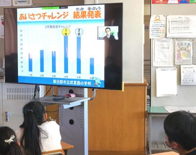 校長先生のお話では、1月のあいさつチャレンジの結果発表が行われました。