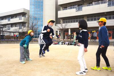 長縄のシーズンに入り、朝や休み時間、下校前には学級のみんなで長縄を行う姿が見られます。