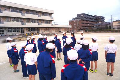 種目別では、6年生の児童が自分たちが教えてもらったことを下級生へと伝えています。