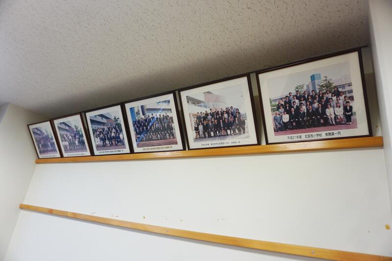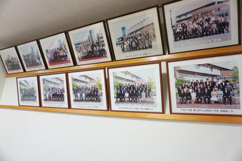 会議室に掲示してある開校以来、歴代の教職員の集合写真です。