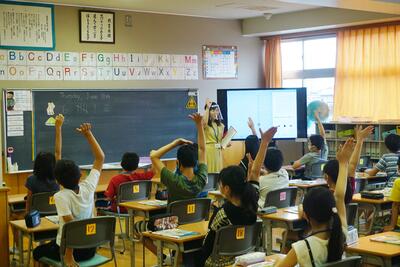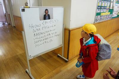 1年生にも紹介すると「うーん、とくに悩みはないな」と無邪気な返答が返ってくるも、新しい先生とそのお知らせには、興味津々の様子でした。