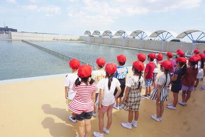 子供たちは、屋上のプールに驚きです。反応が初々しい限り。