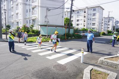 そして、登下校の際には、スクールガードリーダーを始めとしたスクールガード隊や見守りの皆様、地域交番の警察官の皆様、旗当番や自主的に子供たちの登下校を見守ってくださっている保護者や地域の皆様による様々な気働きがあります。
