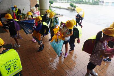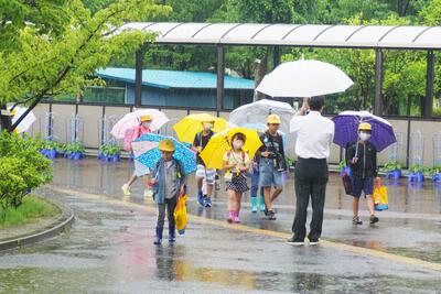 梅雨の期間、急な大雨や熱中症予防に際し、登下校の際のマスク装着の有無や水分補給、周りを見回しての安全な歩き方などを学校でも指導していますが、皆様からもお声がけいただき、助かっています。