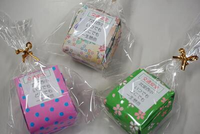 子供たちの交通安全を願った手作りの可愛いミニランドセルを受けとりました。