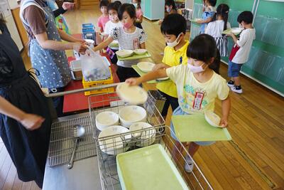 楽しみにしている子も多く、3時間目には「お腹空いた~」「給食はまだですか?」という声がチラホラ聞こえてきました。