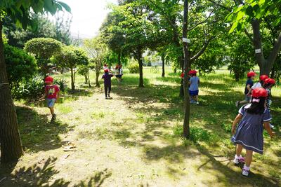 子供たちなりに「こんなお花を見つけたよ!」「この木は何ですか?」など木漏れ日の時間を楽しんでいました。