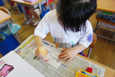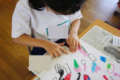 のりの塗り具合や紙の貼り方に注意しながら、のりを出しすぎないように上手く貼れると嬉しそうでした。