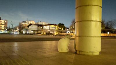 近所の飼い猫でしょうか、ふらっと灯りに誘われたのか、夜景を眺めていました。