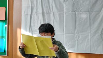 2学期頑張ったこととして、算数や国語、自主学習などの学習について、無言清掃などの生活、運動会や持久走大会などの行事を通しての体力向上など、様々なことを頑張ったと発表がありました。