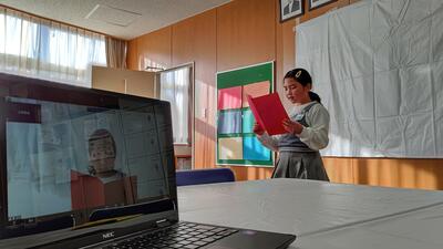 校長先生からは、2学期の様々な行事や学習などを写真を見ながら、子供たちの成長を振り返っていきました。