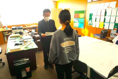 代表委員の2人が代表して賞状を受け取りました。みんなからは頑張った成果を実感し、歓声があがりました。