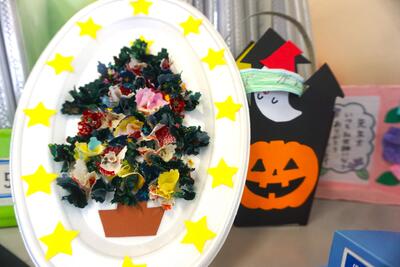 また、児童クラブの皆さんから、クリスマスの手作りレリーフをプレゼントしていただきました。