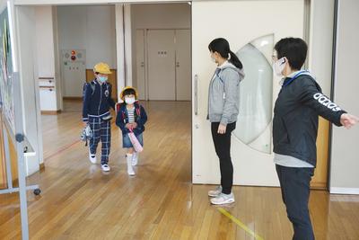 一時預かりを行っていない御家庭においても、登校日の際に配布された健康観察の記録用紙(5月分はピンクの用紙)に毎日の検温や体調について御記入いただき、御協力ありがとうございます。