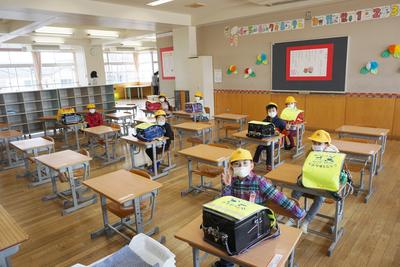 新型感染拡大防止の対策で入学式後の教室でのお話は行われなかったので、この分散登校が1年生にとっての初めての教室拝見となります。