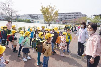 1年生が初日から困らないように、登校班の班長や副班長のお兄さん、お姉さんが優しく案内をしてくれました。