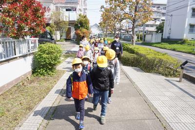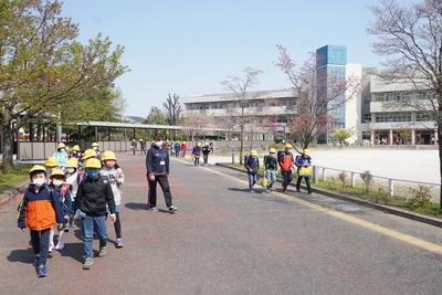 分散登校の3日間では、1・2年生の下校班で一緒に下校しました。