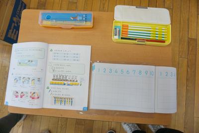 ※以下の画像は1年生用の画像で、あくまで基本形なので、発達段階や学年によって、ノートの種類や置く物が変わっていきます。